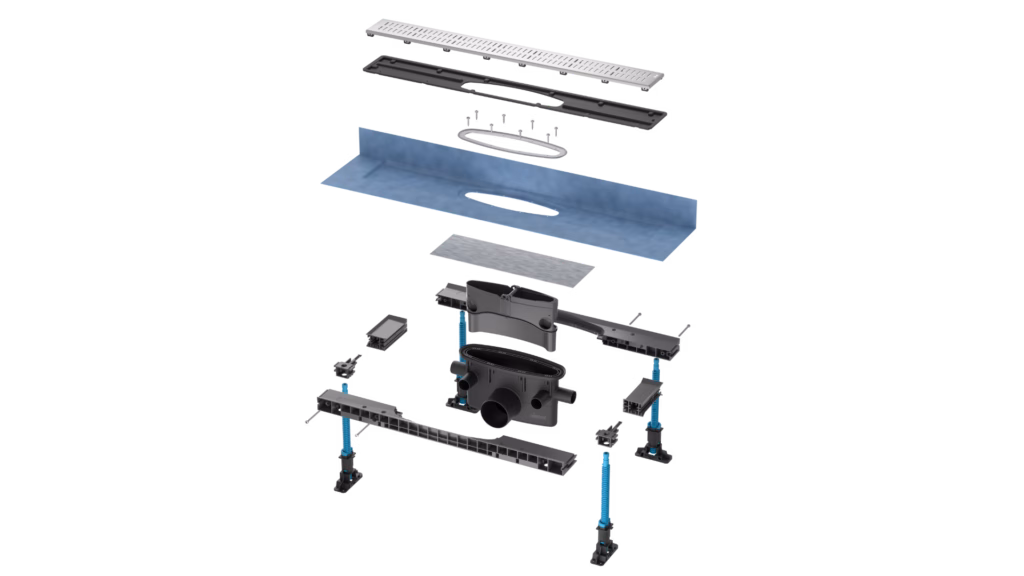 Süsteem koosneb kahest eraldi ostetavast tootepaketist, mis on vajalikud erinevatel ehitusetappidel: trapp ja paigaldusplaat paigaldatakse enne põrandakonstruktsiooni ning kaas ja raam paigaldatakse viimistlusetapil.